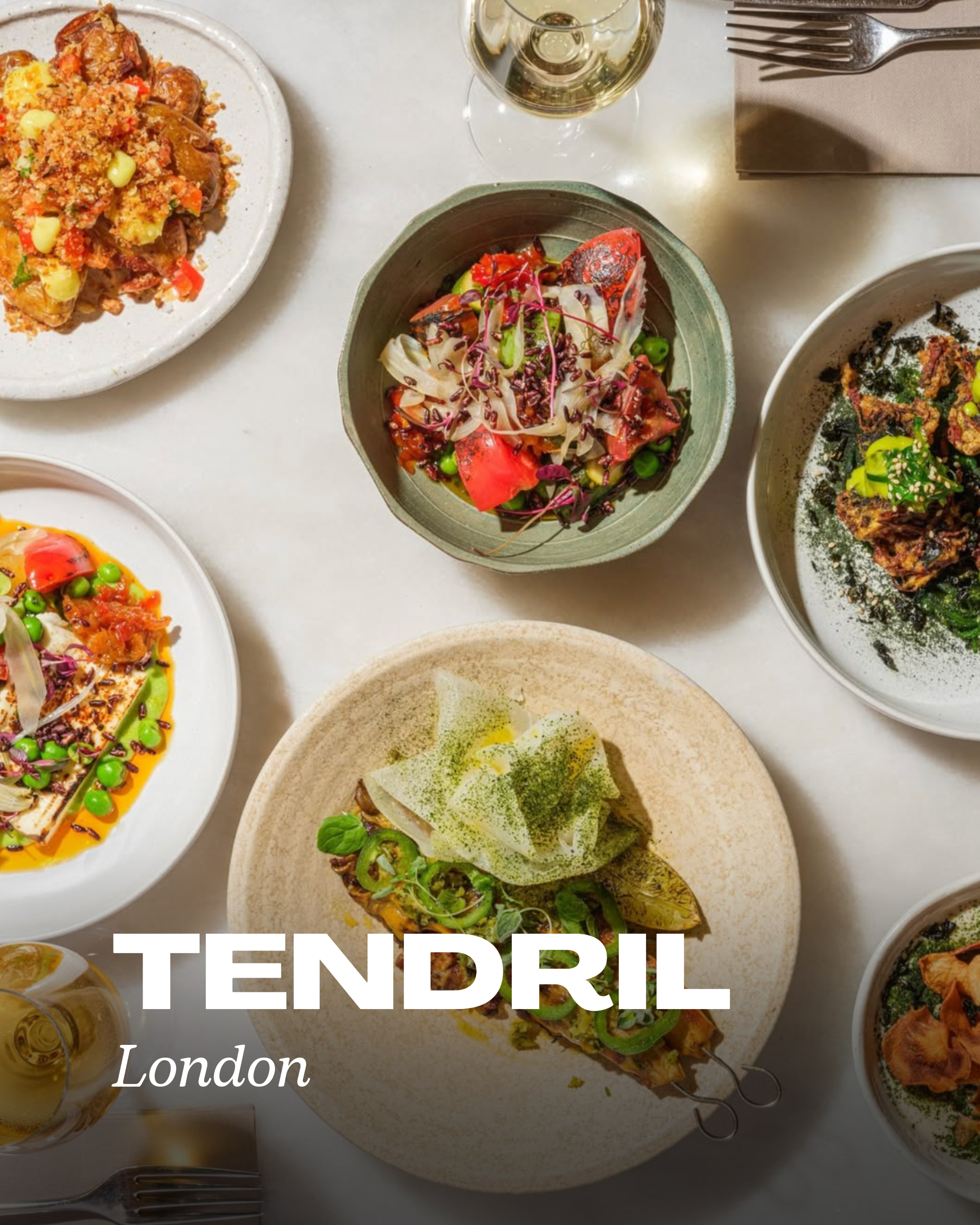 Tendril has emerged as one of London’s most exciting vegan-friendly restaurants, earning praise from the Michelin Guide for its globally inspired, flavor-driven approach. The menu balances refinement with accessibility, showcasing how plant-based dishes can be both bold and sophisticated.